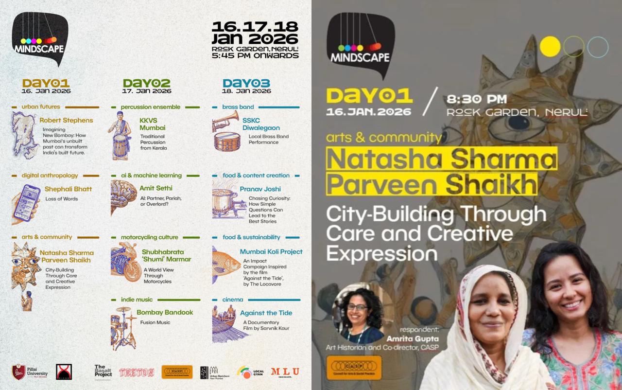 We are thrilled that CASP joined as a collaborator at the 9th edition of the Mindscape Festival, where we co-hosted a lively conversation on the evolution of the Govandi Arts Festival, a community-led arts and culture movement that reclaims, transforms, and celebrates the socio-spatial narratives of marginalized neighbourhoods in Govandi, located within the M East Ward, Mumbai.